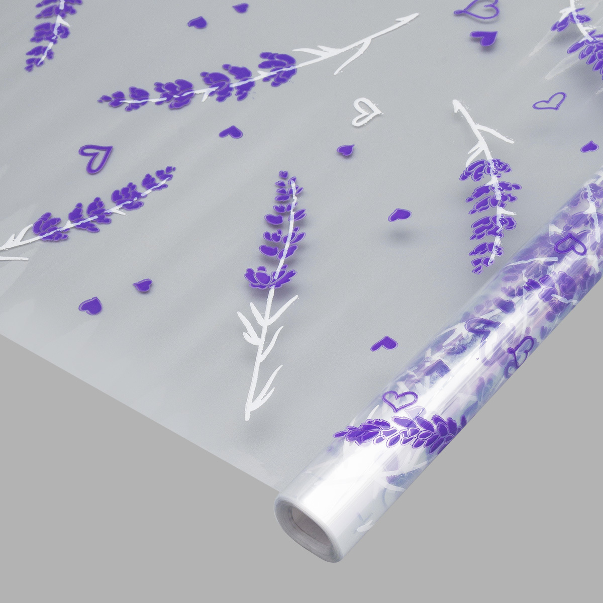 Пленка прозрачная двухцветная с рисунком Лаванда бело-сиреневая 70 см / 9.14±5% метра