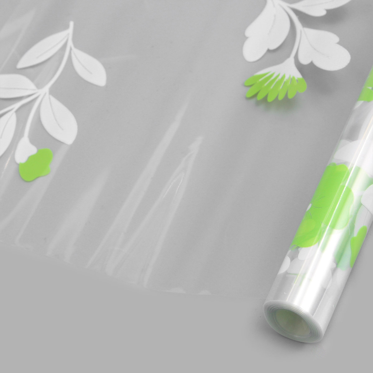 Пленка прозрачная двухцветная с рисунком Полевые цветы бело-салатовая 70 см / 9.14±5% метра