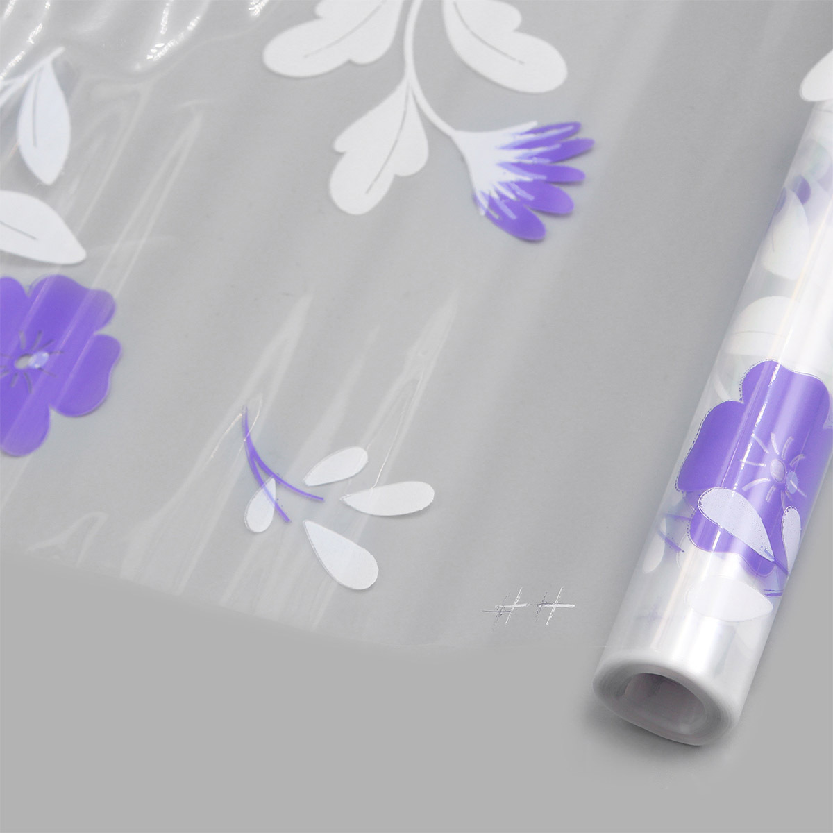 Пленка прозрачная двухцветная с рисунком Полевые цветы бело- сиреневая 70 см / 9.14±5% метра