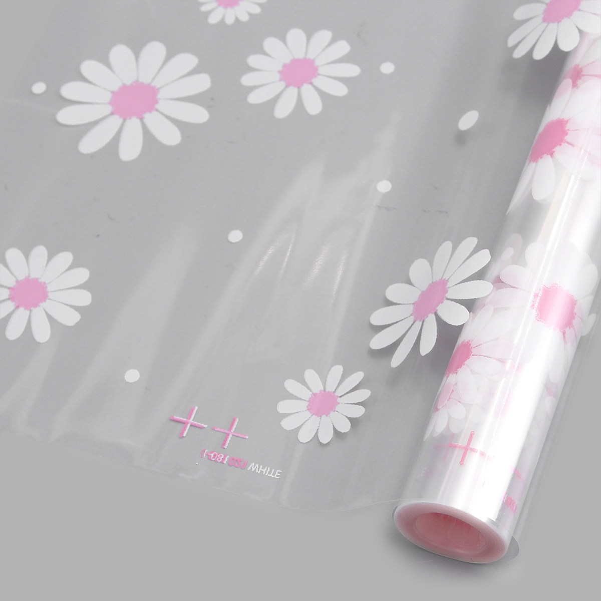 Пленка прозрачная двухцветная с рисунком Ромашка бело-розовая 70 см / 9.14±5% метра