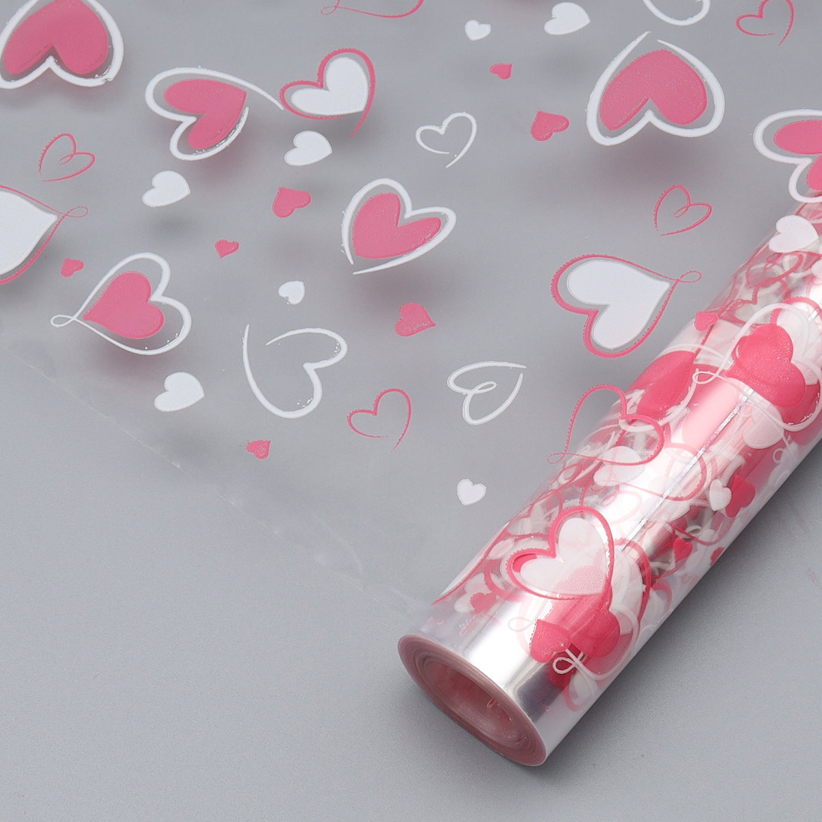 Пленка прозрачная двухцветная Сердечки 2 бело-розовые 70 см / 7.7 метров ±5%, 200 г