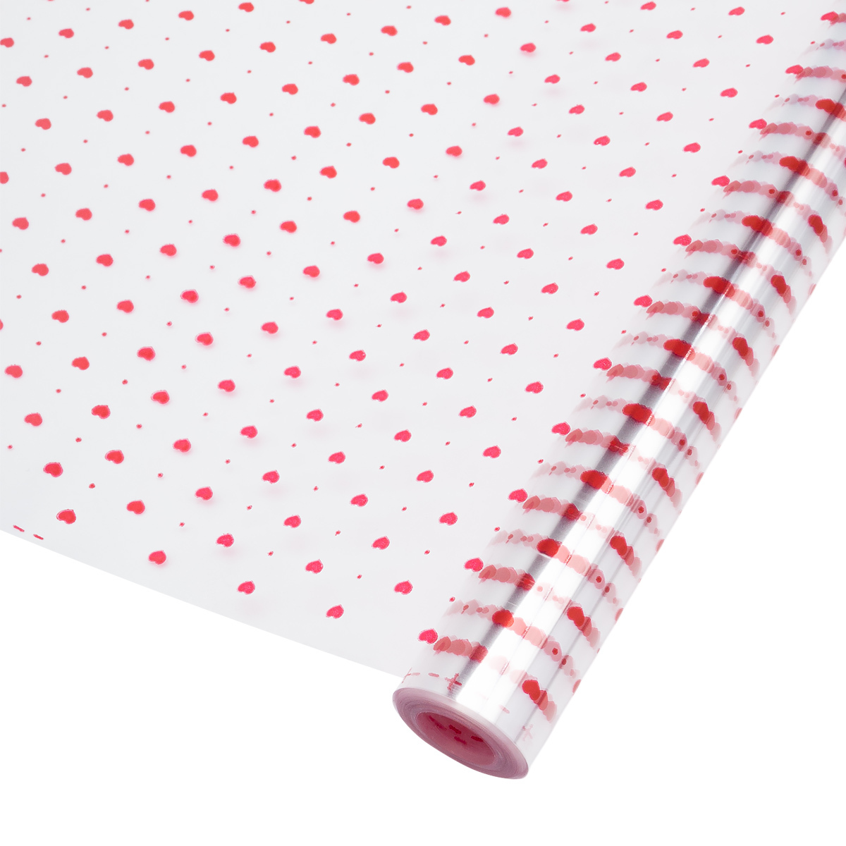 Пленка прозрачная Мелкие сердечки красные 200 г, 70 см / 7.7±5% метра