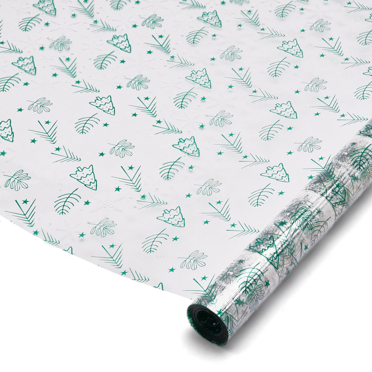 Пленка прозрачная с рисунком 40мкм, 68 см / ±5%, 200г, Елочки НГ зеленая
