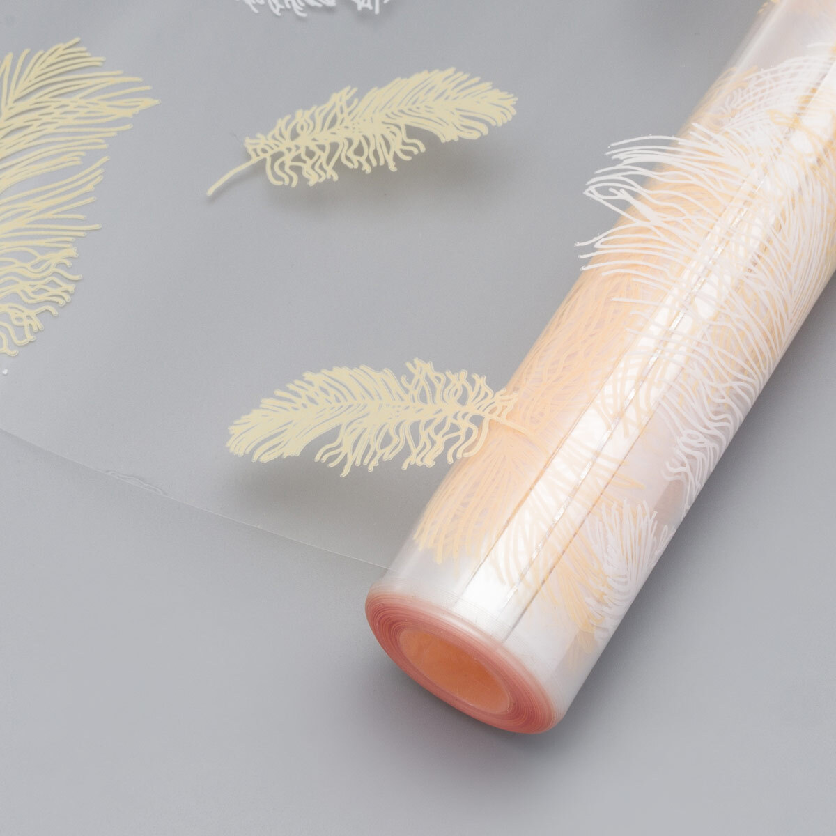 Пленка цветная 40мкм, 60 см / 9 метров ±5%, Перышки, белый/кремовый, 105878