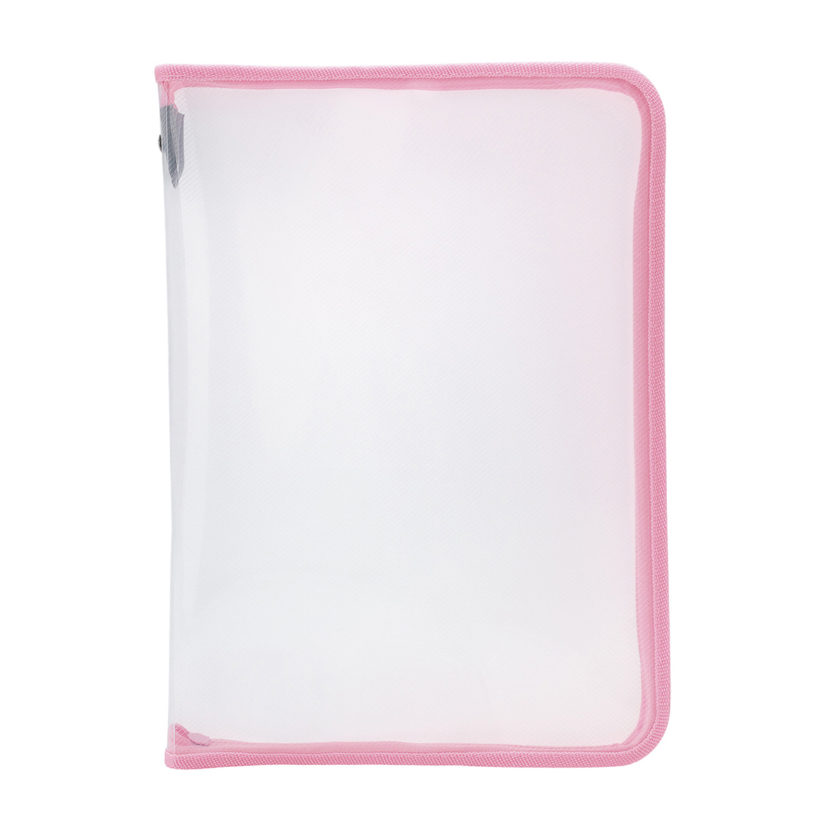 Папка для тетрадей А4 молния вокруг, прозрачный пластик (розовая), ПМ-А4-01