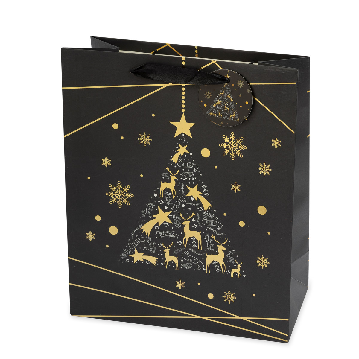 Выполнен из плотной бумаги 210 г/м², для удобной переноски на пакете имеются две ручки из атласной ленты.
