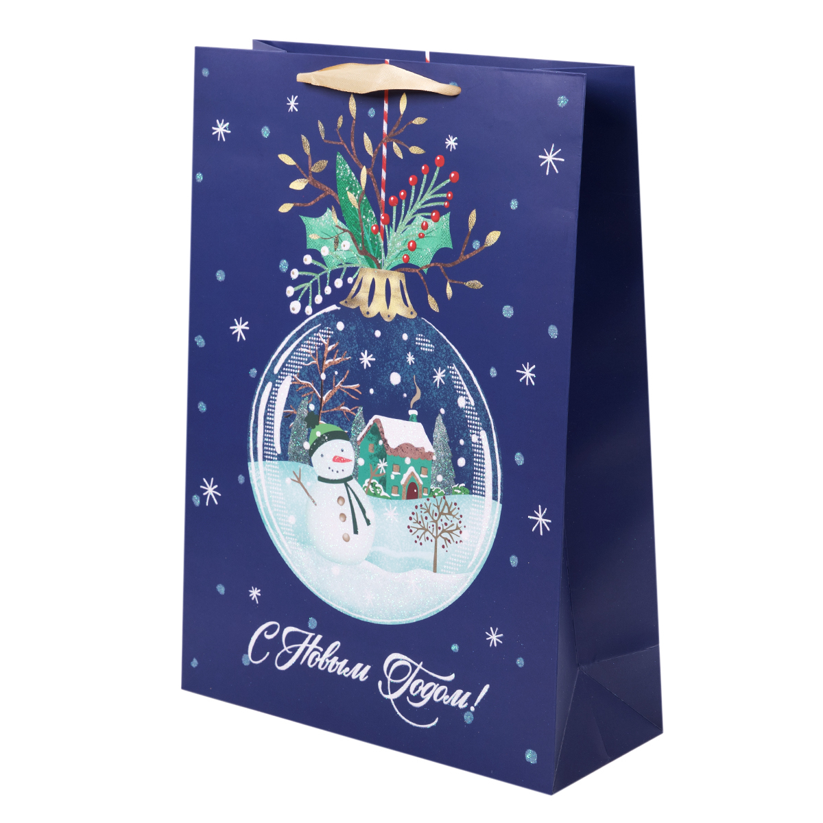 Выполнен из плотной бумаги 210 г/м², для удобной переноски на пакете имеются две ручки из атласной ленты.