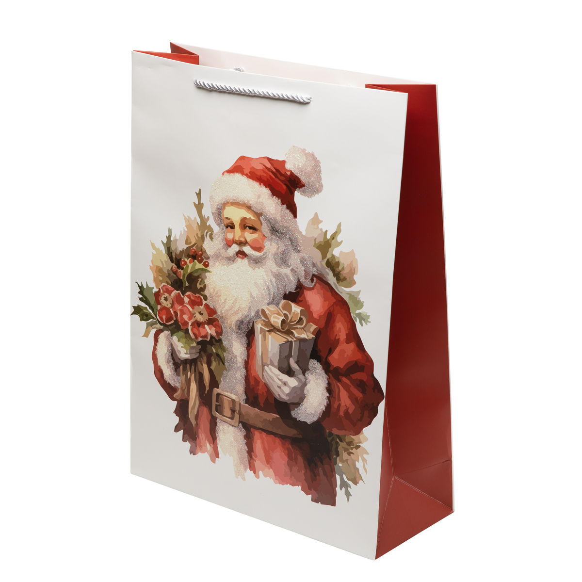 Выполнен из плотной бумаги 210 г/м², для удобной переноски на пакете имеются две ручки из атласной ленты.