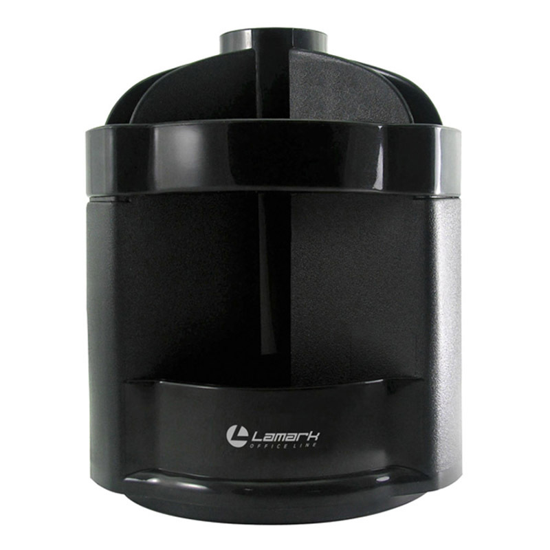 Lamark Frankfurt – подставка-органайзер для канцелярских принадлежностей. Подходит для хранения ручек, линеек, ластиков, маркеров, ножниц и других предметов. Подставка с лаконичным дизайном – лучший выбор для офисов и банков. Особенности: – Материал – пластик высокого качества. Такая подставка выдерживает стандартные эксплуатационные нагрузки и прослужит вам долго. – Поворотная платформа (максимальный поворот 360 градусов) позволяет быстро взять нужный предмет, не двигая подставку. Цвет: черный.