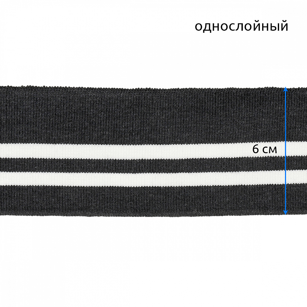 Подвяз (довяз) трикотажный 6.0х80 см, т.серый с белыми полосами, 100% п/э, 5 штук