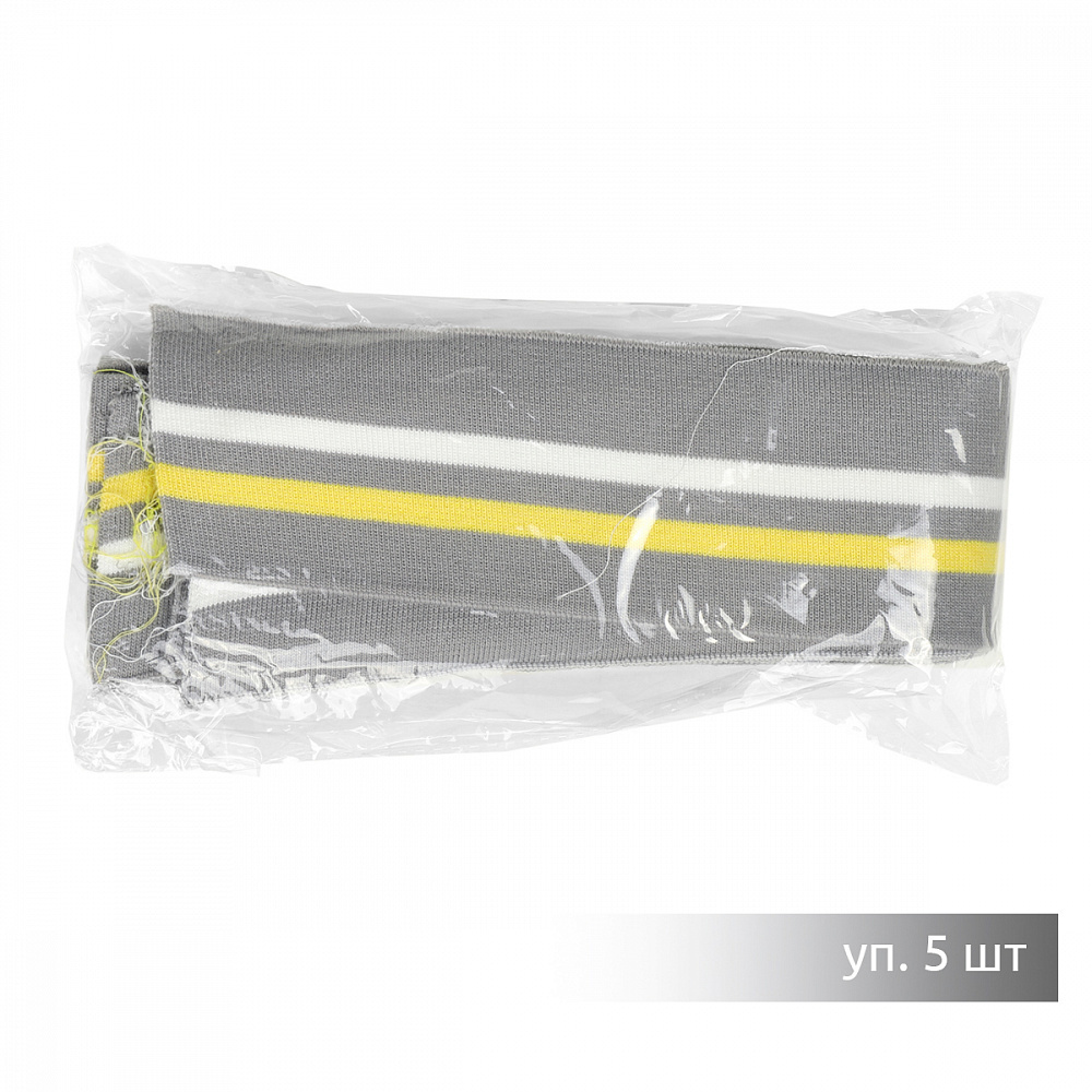 Подвяз (довяз) трикотажный 6.0х80 см, серый с белой и желтой полосами, 100% п/э, 5 штук