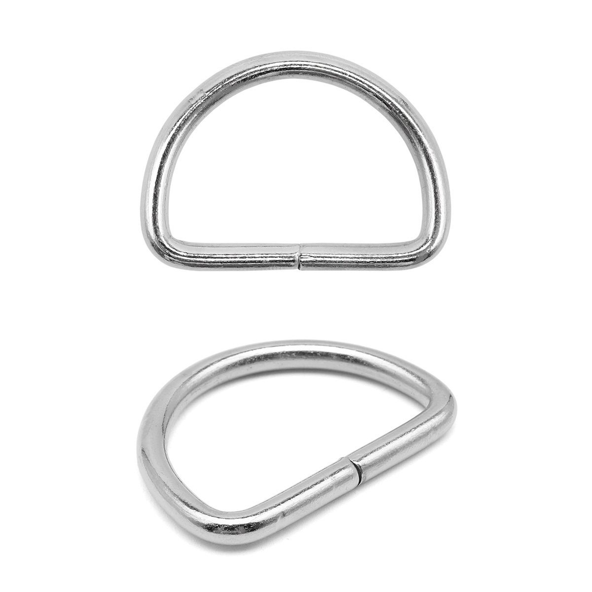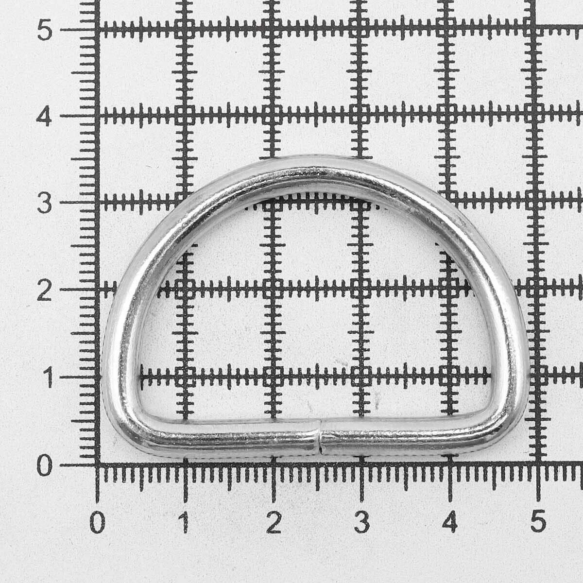Полукольца – соединительные элементы для сумок и рюкзаков. Используются вместе с карабинами, пряжками, замками и другой сумочной фурнитурой. Данное полукольцо неразъемное, сварное. Подходит для ремней из стропяной ленты, натуральной или искусственной кожи, других плотных материалов. Изготовлено из нержавеющего металлического сплава, прочное, не гнется, сохраняет цвет. Выдерживает воздействие влаги, солнечных лучей, перепады температур и другие стандартные нагрузки. Цвет: никель. Размер: 48х34 мм, внутри 39 мм, диаметр прутка 4,5 мм.