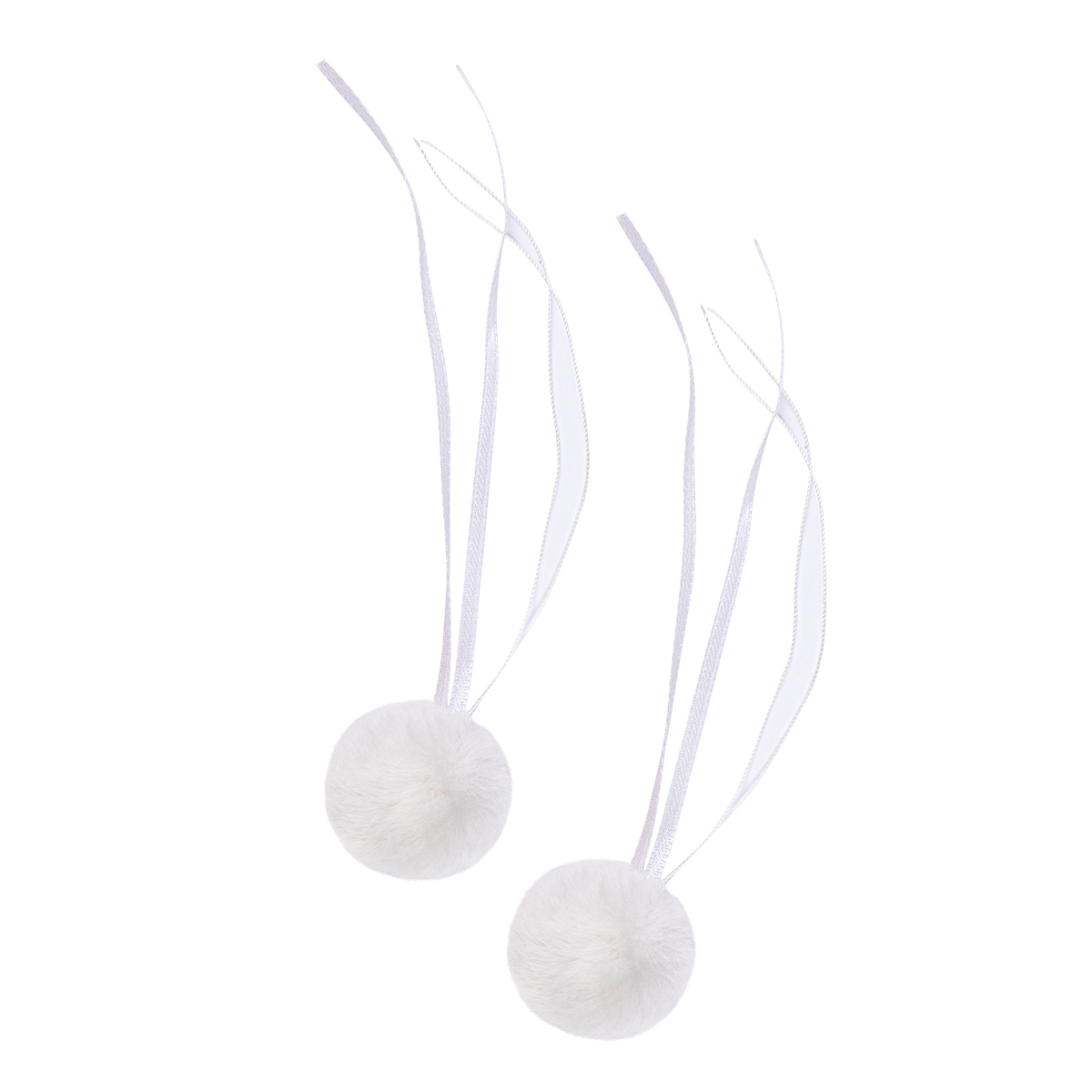 У помпонов имеются тонкая атласная ленточка и прочные нити, благодаря которым можно закрепить помпоны.