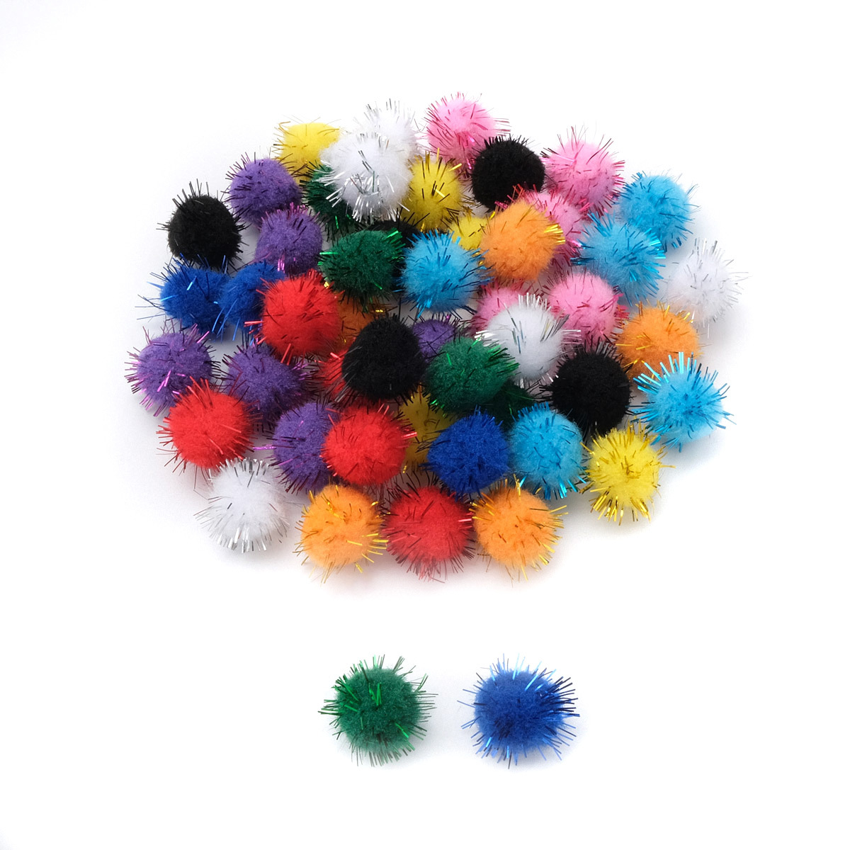 Помпоны с блестками ⌀15мм, 10 цветов, 50 шт, Astra&Craft