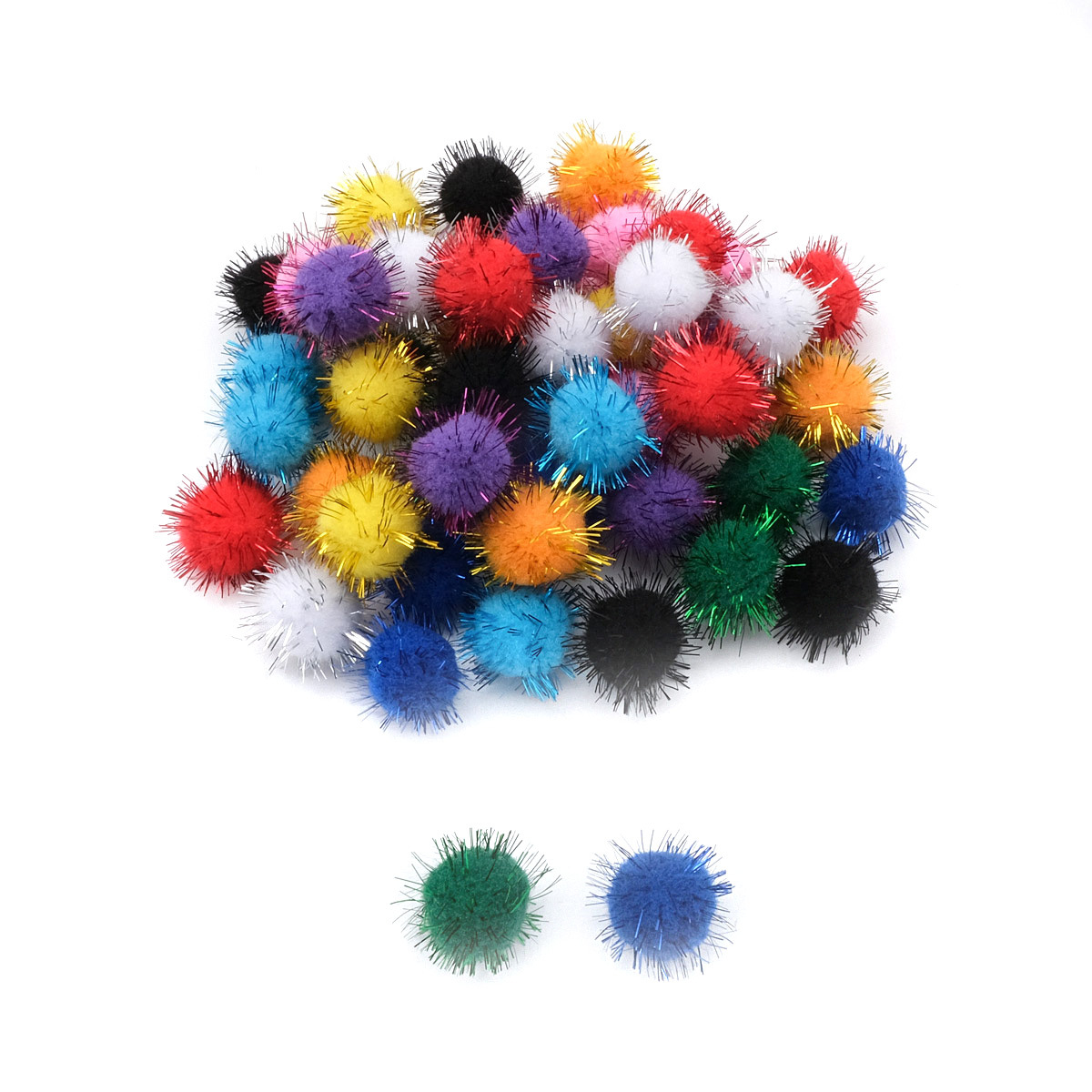 Помпоны с блестками ⌀25мм, 10 цветов, 50 шт, Astra&Craft