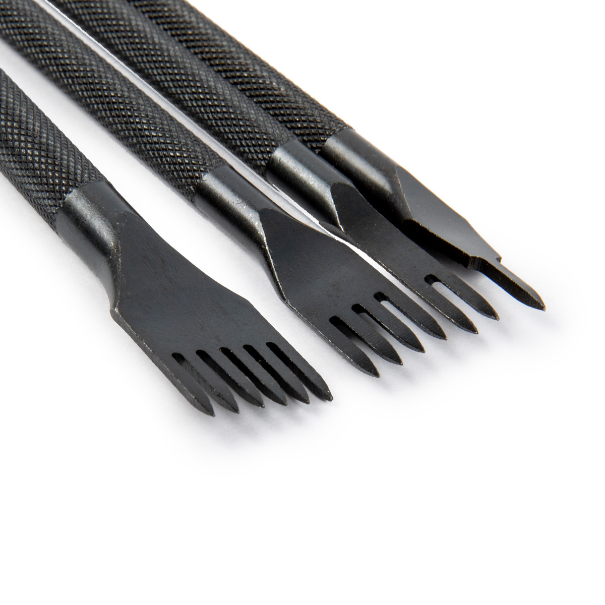 В набор входят 4 пробойника с ромбовидными зубцами:1, 2, 4, 6 зубцов.