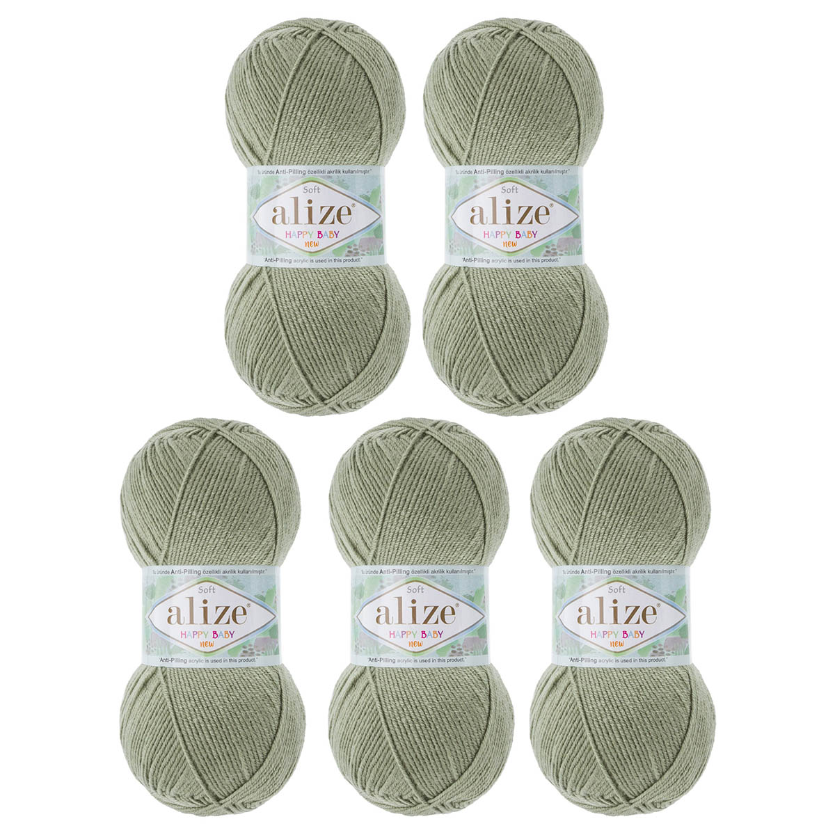 Пряжа Alize (Ализе) Happy Baby New / уп.5 мот. по 100 г, 320м, 138 оливковый