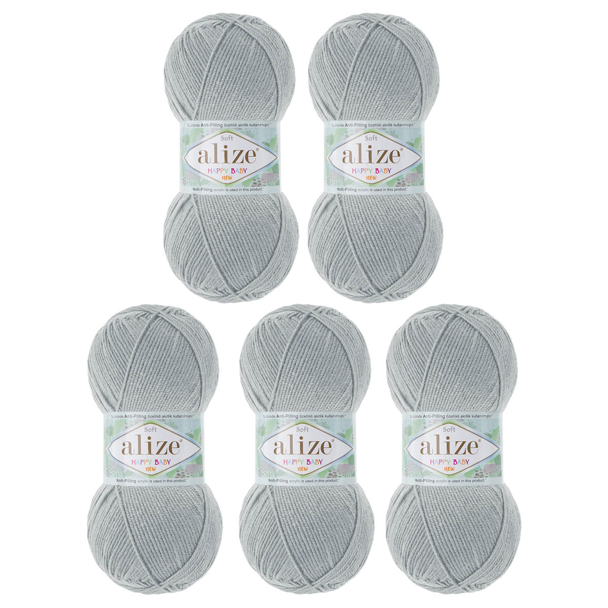 Пряжа Alize (Ализе) Happy Baby New / уп.5 мот. по 100 г, 320м, 344 серый
