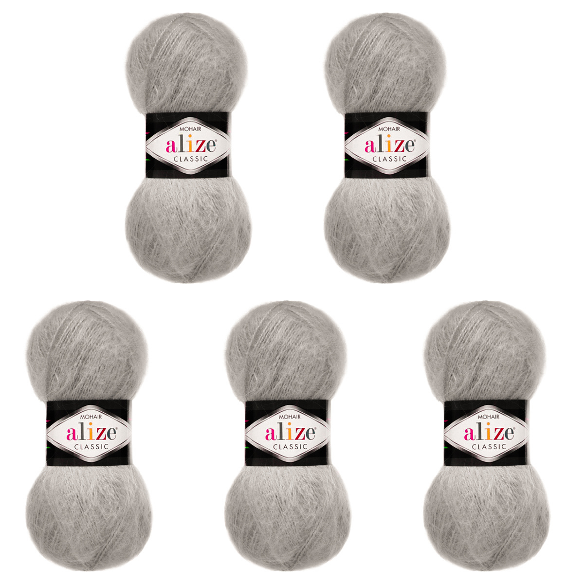 Пряжа Alize (Ализе) Mohair Classic New / уп.5 мот. по 100 г, 200м, 990 пепельный беж