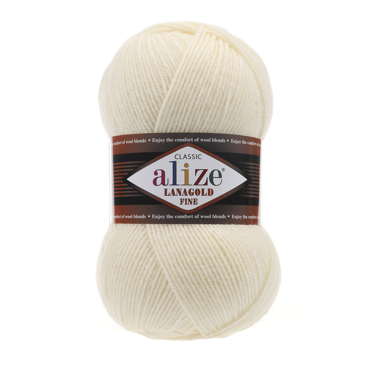 Пряжа Alize (Ализе) Lana Gold Fine / уп.5 мот. по 100 г, 390м, 001 кремовый A