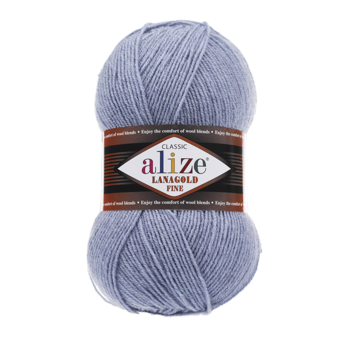 Пряжа Alize (Ализе) Lana Gold Fine / уп.5 мот. по 100 г, 390м, 221 светлый джинс меланж A