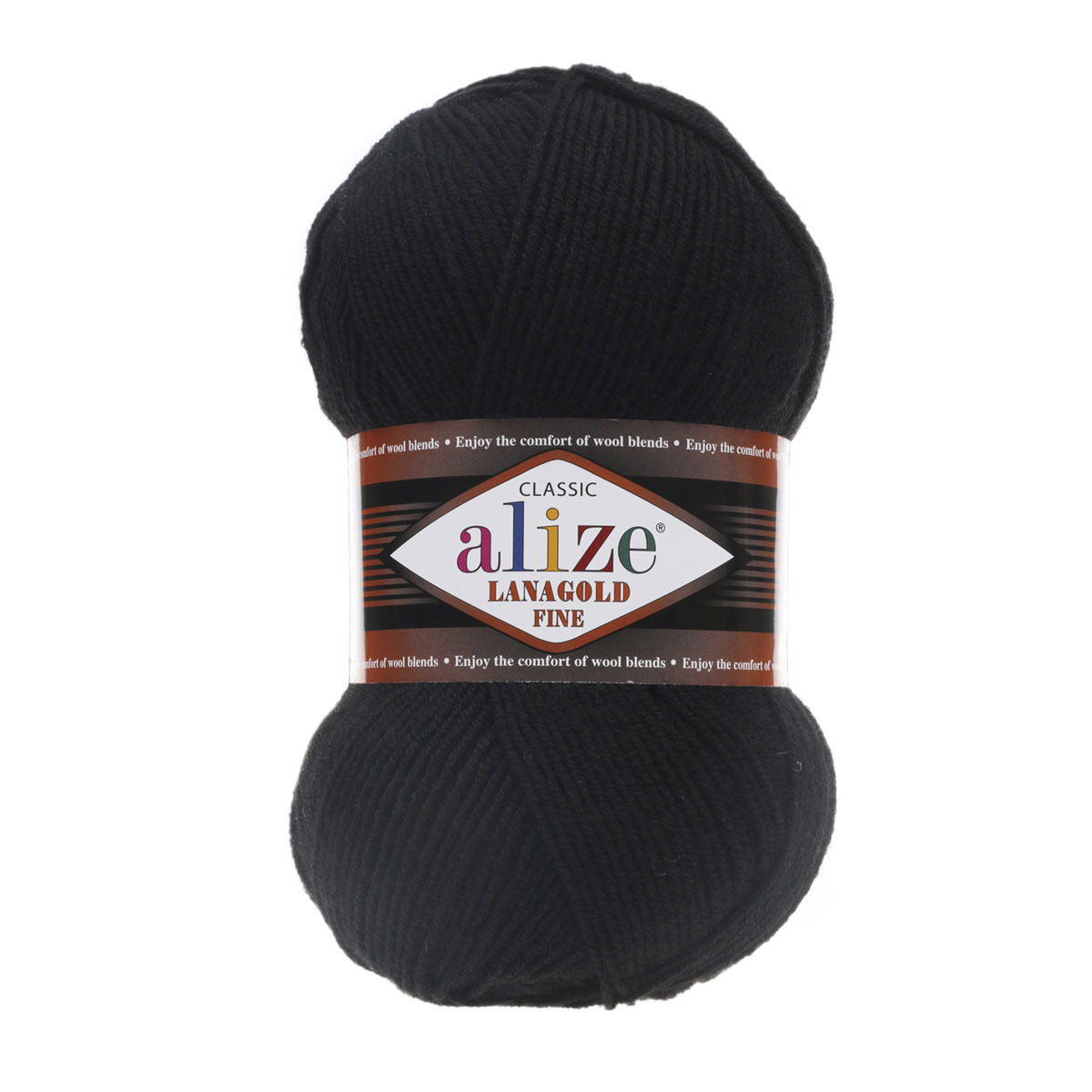Пряжа Alize (Ализе) Lana Gold Fine / уп.5 мот. по 100 г, 390м, 060 черный A