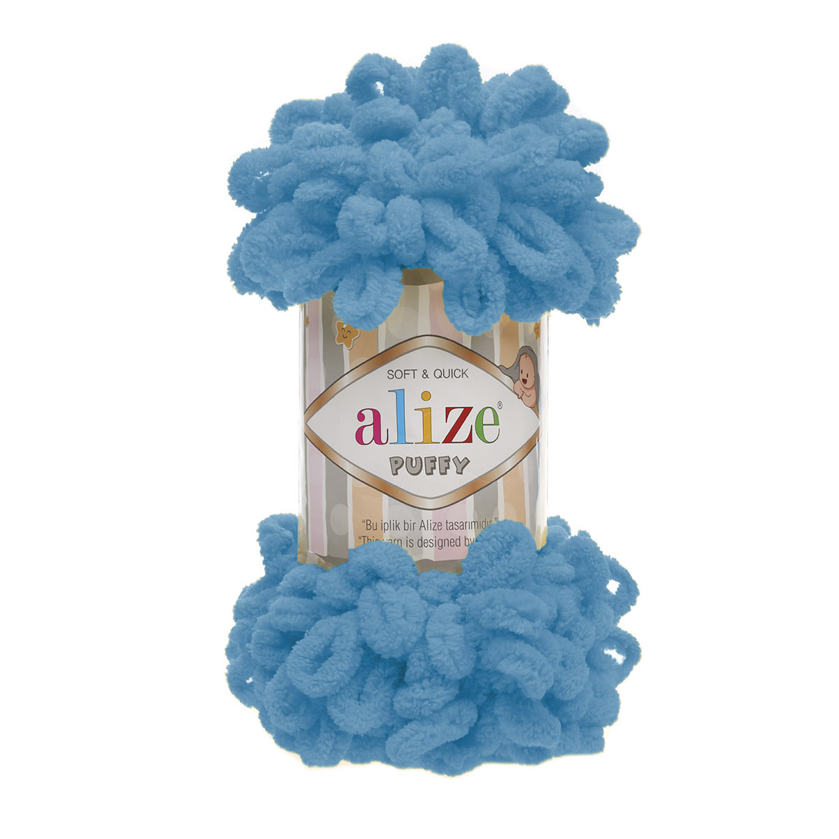 Пряжа Alize (Ализе) Puffy / уп.5 мот. по 100 г, 9м, 016 голубой сочи A