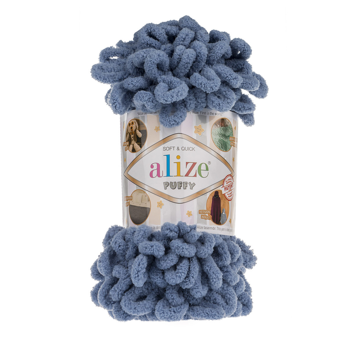 Пряжа Alize (Ализе) Puffy / уп.5 мот. по 100 г, 9м, 374 голубой A