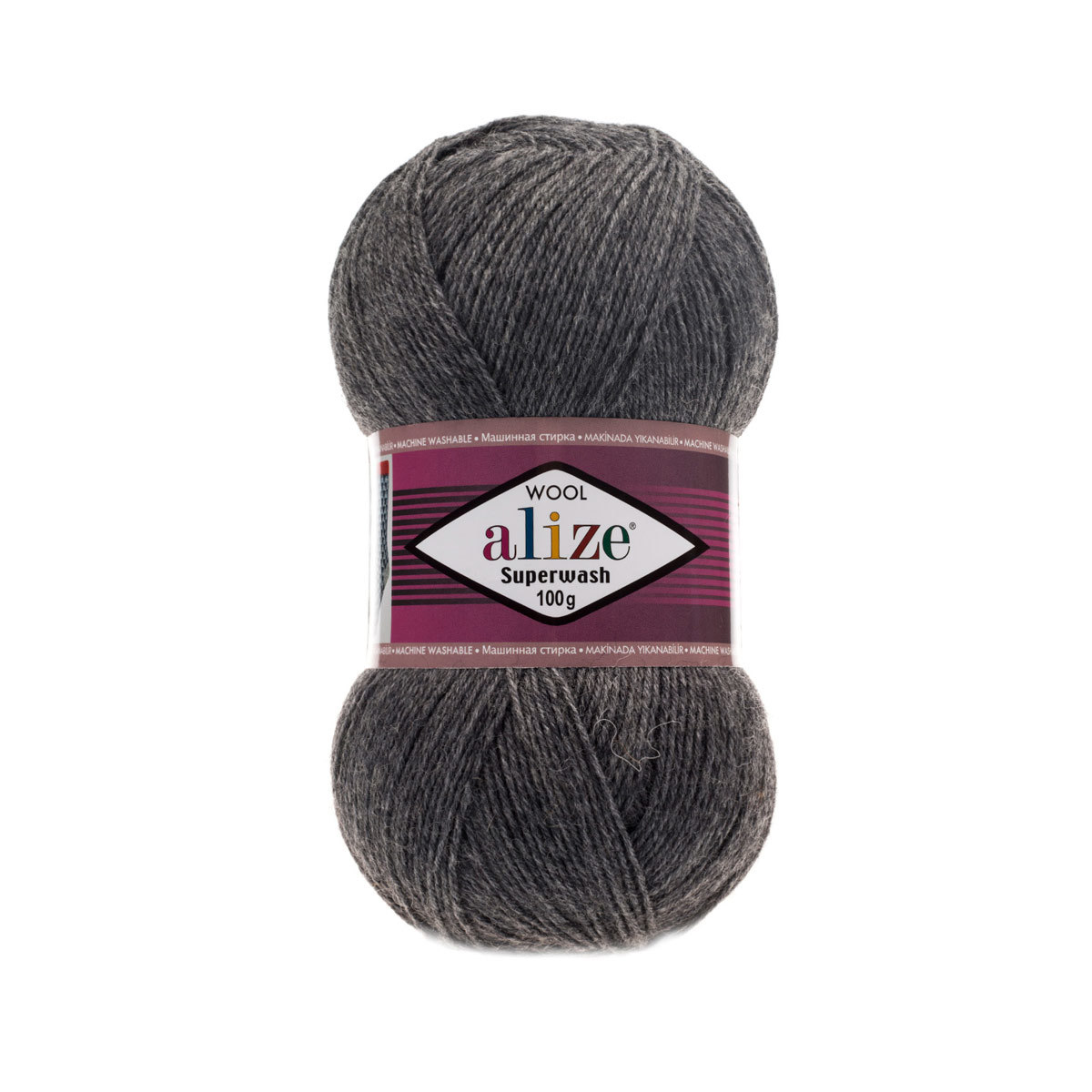 Пряжа Alize (Ализе) Superwash Comfort Socks / уп.5 мот. по 100 г, 420м, 182 темно-серый меланж A