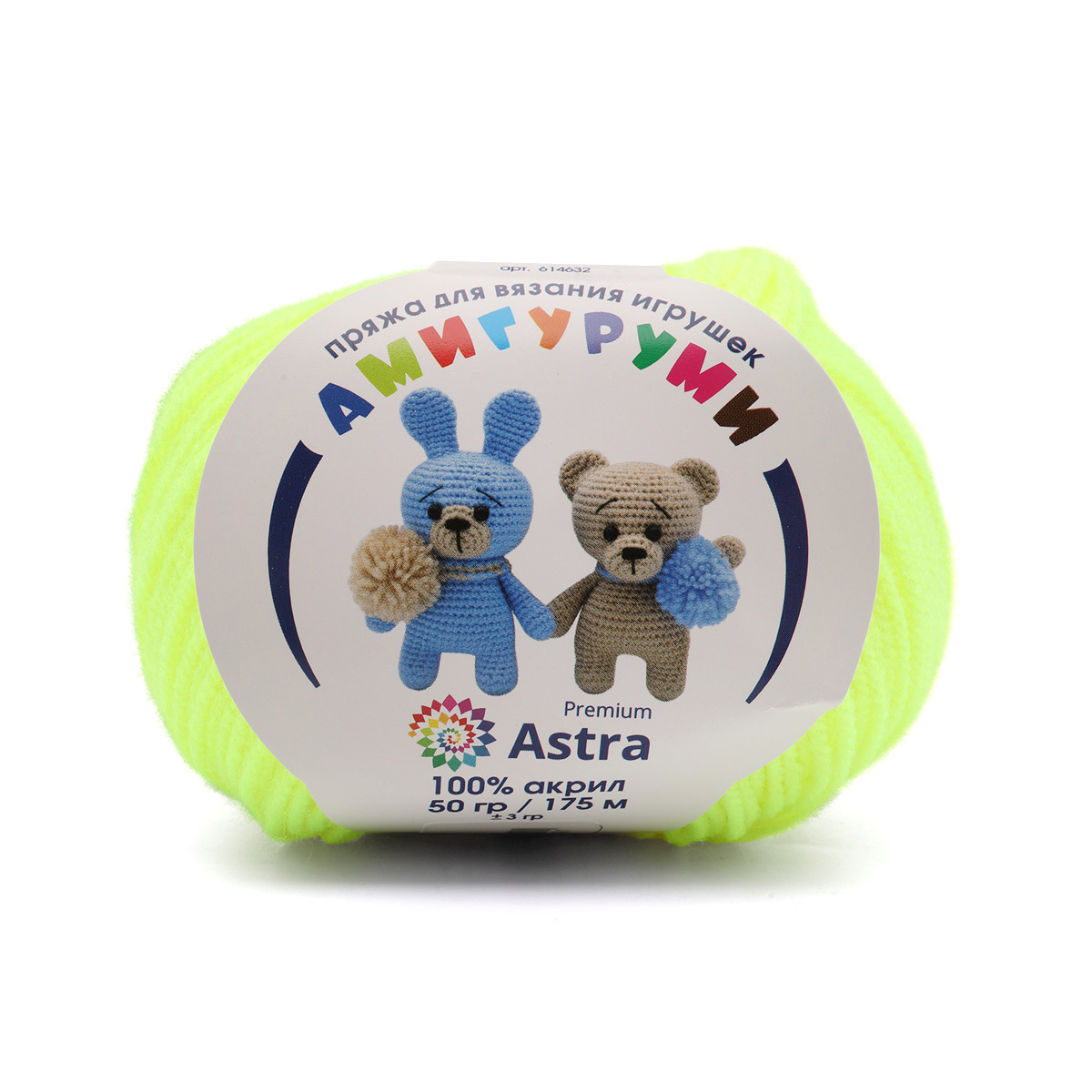 Пряжа Astra Premium (Астра Премиум) Амигуруми / уп.6 мот. по 50 г, 175 м, 236 салат неон