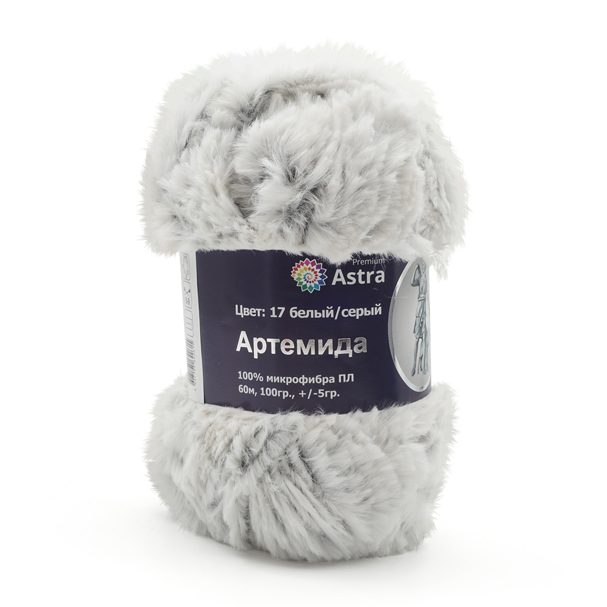 Пряжа Astra Premium (Астра Премиум) Артемида / уп.3 мот. по 100 г, 60 м, 17 белый/серый