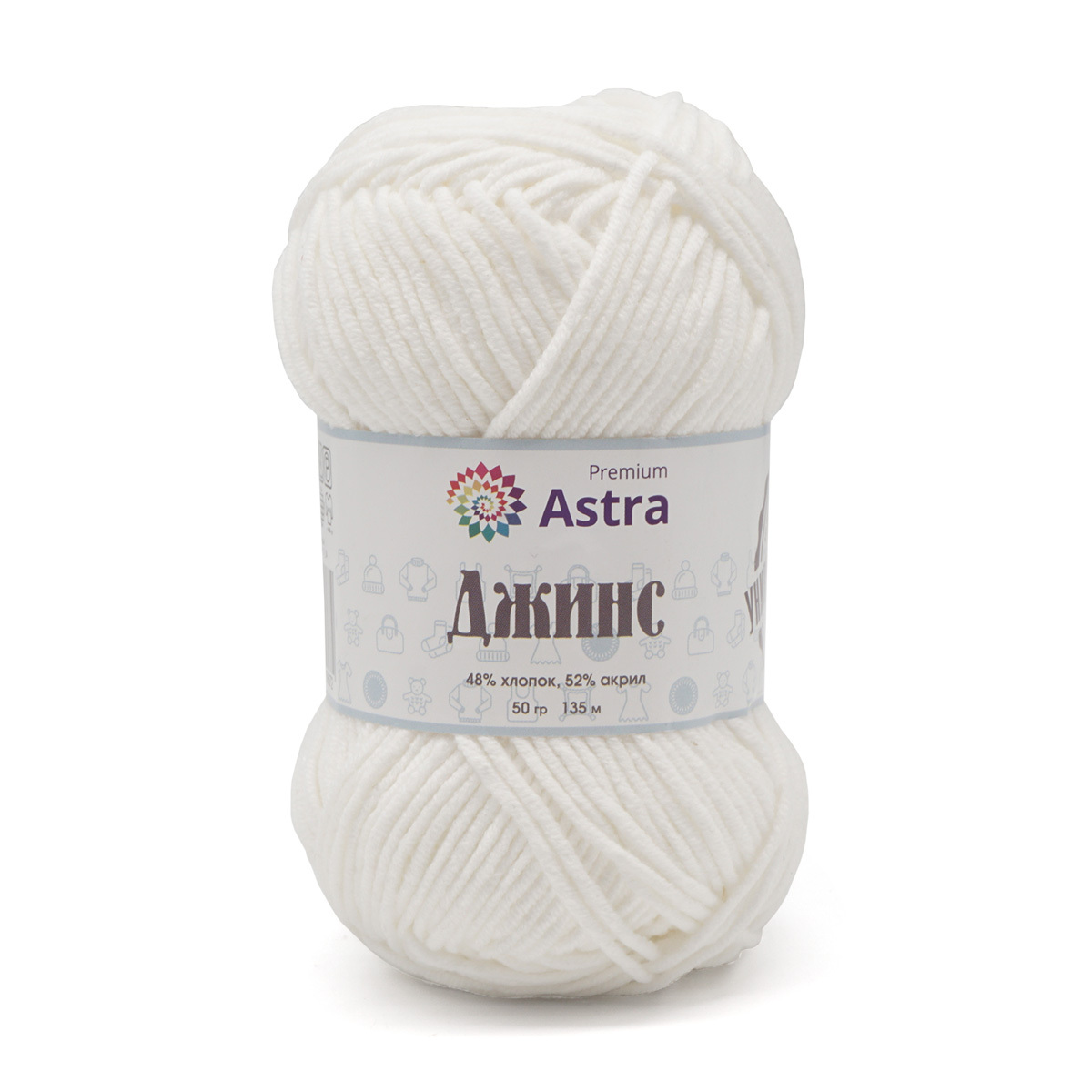 Пряжа Astra Premium (Астра Премиум) Джинс (Jeans) / уп.4 мот. по 50 г, 135 м, 001 белый