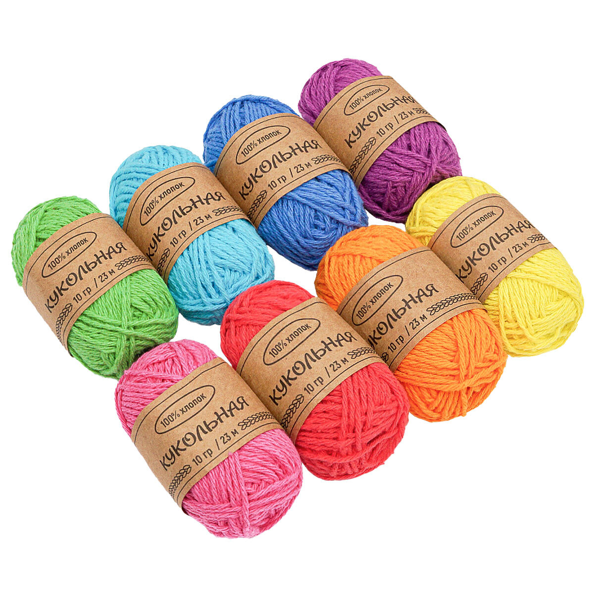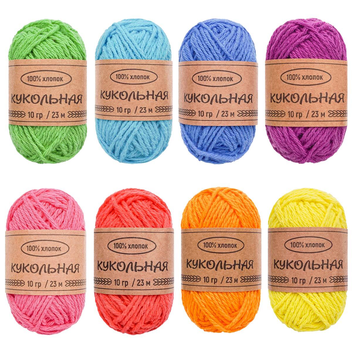 Пряжа Кукольная от торговой марки Astra Premium идеально подходит для вязания одежды для кукол и игрушек. Из хлопковой пряжи можно создать удивительные вещи для мини-гардероба: ажурные юбки, яркие платья, очаровательные панамки и стильные береты. Пряжа Кукольная изготовлена из качественного 100% хлопка. Нить классической крутки, равномерная по всей длине, полотно не растягивается и не деформируется при эксплуатации. Пряжа дает возможность создания аккуратных рядов и ровно распределяется в узоре. Яркие цвета пряжи не тускнеют на солнце и прекрасно переносят стирку. Готовая кукольная одежда из этой пряжи прочная и долговечная, почти не деформируется и приятная на ощупь. Отлично подходит для вязания спицами и крючком. В одной упаковке 8 миниатюрных разноцветных мотков. В одном мотке 10 г и 23 м пряжи. Рекомендуемые спицы/крючок: 4-5 мм. Толщина нити: средняя.