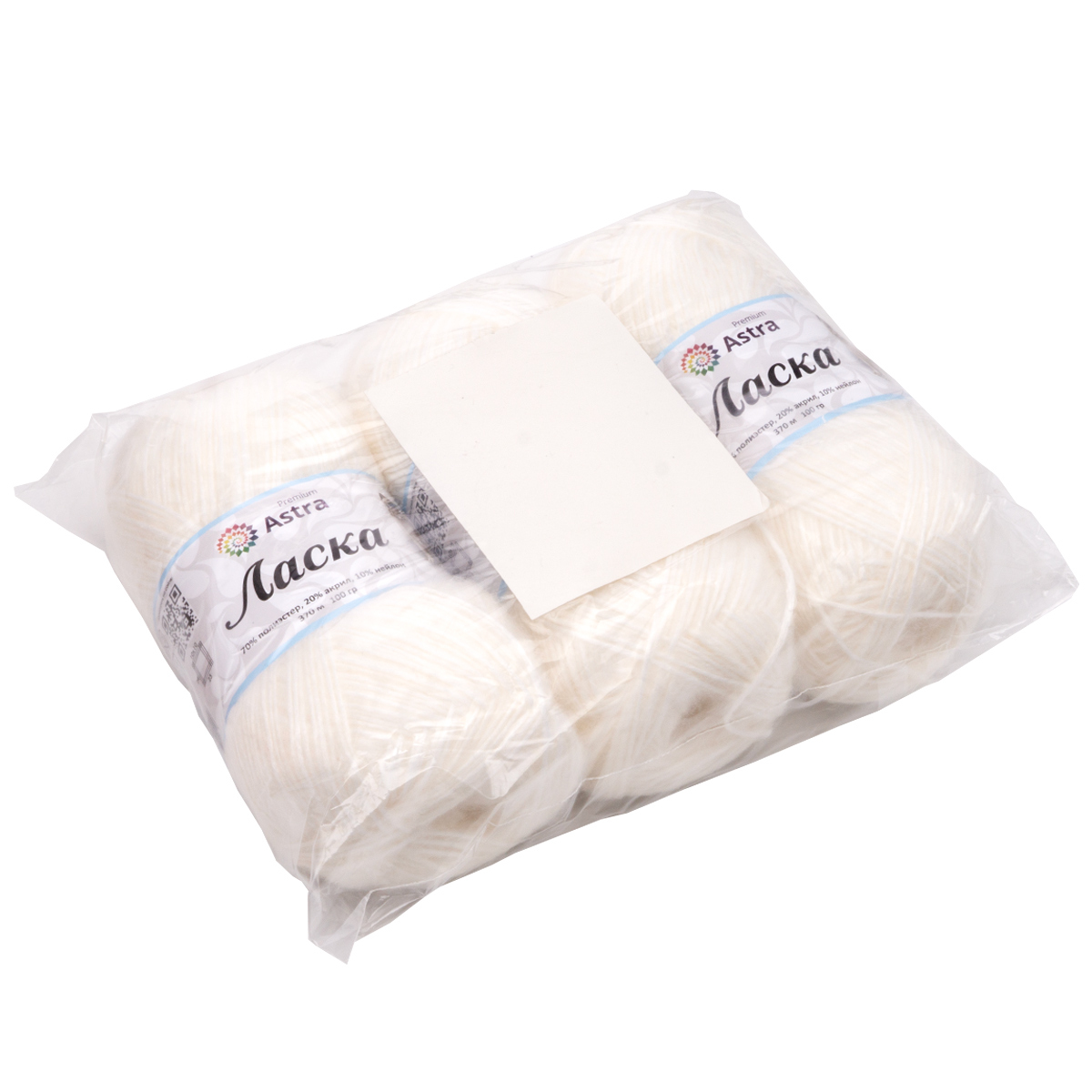 Пряжа Astra Premium (Астра Премиум) Ласка / уп.3 мот. по 100 г, 370 м, 001 белый