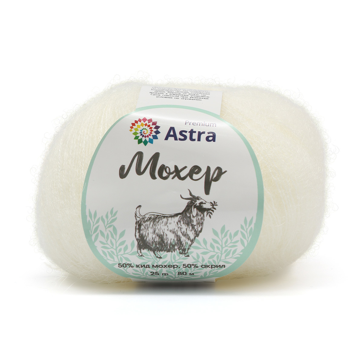 Пряжа Astra Premium (Астра Премиум) Мохер / уп.4 мот. по 25 г, 190 м, 01 белый