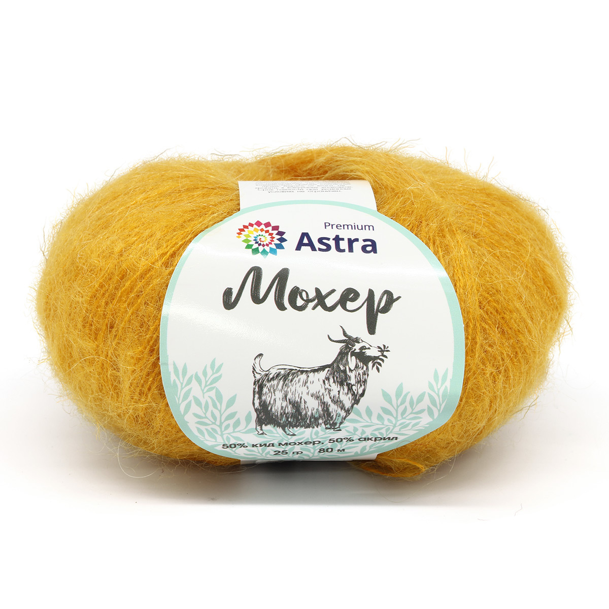 Пряжа Astra Premium (Астра Премиум) Мохер / уп.4 мот. по 25 г, 190 м, 23 горчичный
