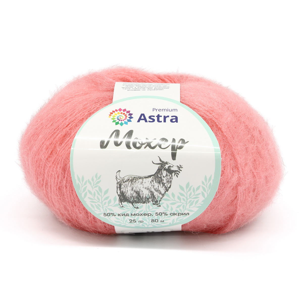 Мохер' (Mohair) – полушерстяная пряжа от Astra Premium с выраженным ворсом. В составе пряжи – шерсть кид мохер родом из Южной Африки. Волокно кид мохер получают при стрижке полугодовалых козлят ангорской породы. Такая шерсть особенно тонкая, мягкая и отлично согревает. Вещи из пряжи 'Мохер' (Mohair) очень пушистые, с длинным ворсом. После влажной тепловой обработки ворс становится еще более выраженным. В составе присутствует акрил – традиционная добавка к шерстяной пряже. Это волокно придает нити дополнительную мягкость, прочность и увеличивает срок службы вещей. Пряжа имеет более 15 цветов и оттенков, среди которых модный мятный, нежный карамельный, спокойный дымчато-серый, насыщенный красный. Выбирайте и комбинируйте цвета – они отлично сочетаются между собой! Рекомендации по уходу за изделиями: ручная стирка при 30 градусах Цельсия без отбеливающих средств, гладить при минимальной температуре, допускается только естественная сушка в расправленном виде, возможна профессиональная чистка. Толщина нити: средняя. Материал: 50% кид мохер, 50% акрил. Рекомендуемые спицы / крючок: №1-4.