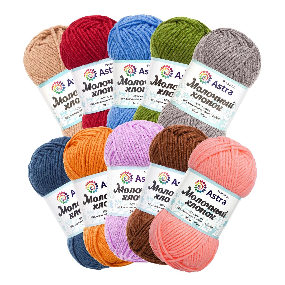 Пряжа Astra Premium (Астра Премиум) Молочный хлопок / уп.10 мот. по 50 г, 100 м, ассорти №3, 10 цв