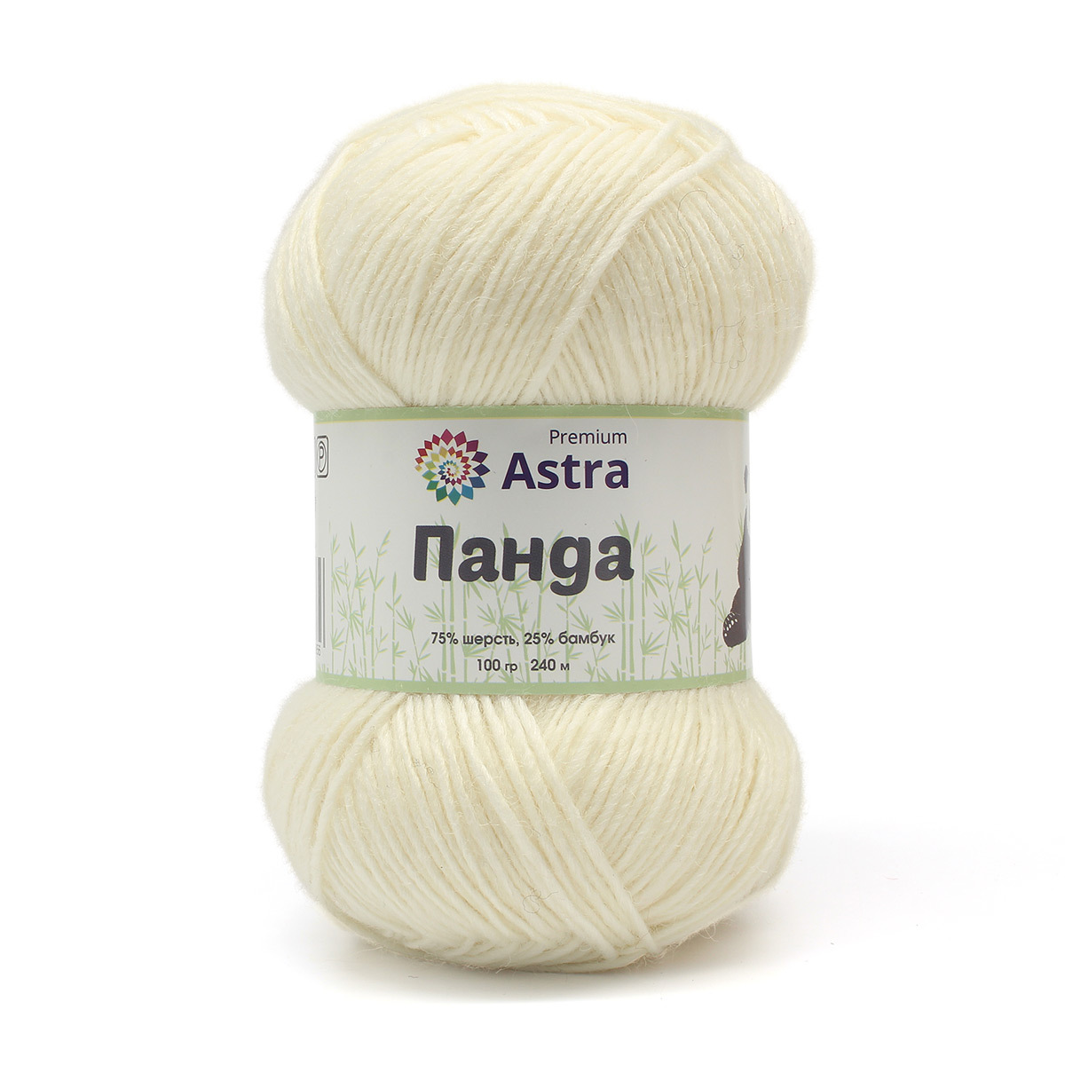 Пряжа Astra Premium (Астра Премиум) Панда (Panda) / уп.2 мот. по 100 г, 240 м, 001 белый