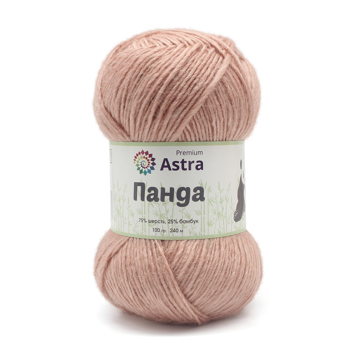 Панда' от Astra Premium – пряжа из шерсти и бамбука, полностью натуральных волокон. Бамбуковое волокно ценят за гигроскопичность, мягкость, способность впитывать влагу. Благодаря большому содержанию шерсти изделия из этой пряжи отлично согревают и подходят для холодной погоды. Свяжите из этой пряжи комплект 'шапочка и шарф', согревающую жилетку, объемный свитер. Нить имеет легкий меланжевый эффект. В ассортименте различные цвета, среди которых нейтральные белый и черный, нежный розовый, модный мятный, элегантный 'охра'. Подбирайте и комбинируйте их на свой вкус! Произведено на оборудовании итальянской марки GAUDINO. Рекомендации по уходу за изделиями: ручная стирка без отбеливающих средств, не гладить, только естественная сушка, допускается профессиональная чистка. Толщина нити: тонкая. Материал: 75% шерсть, 25% бамбук. Рекомендуемые спицы / крючок: №3-4.