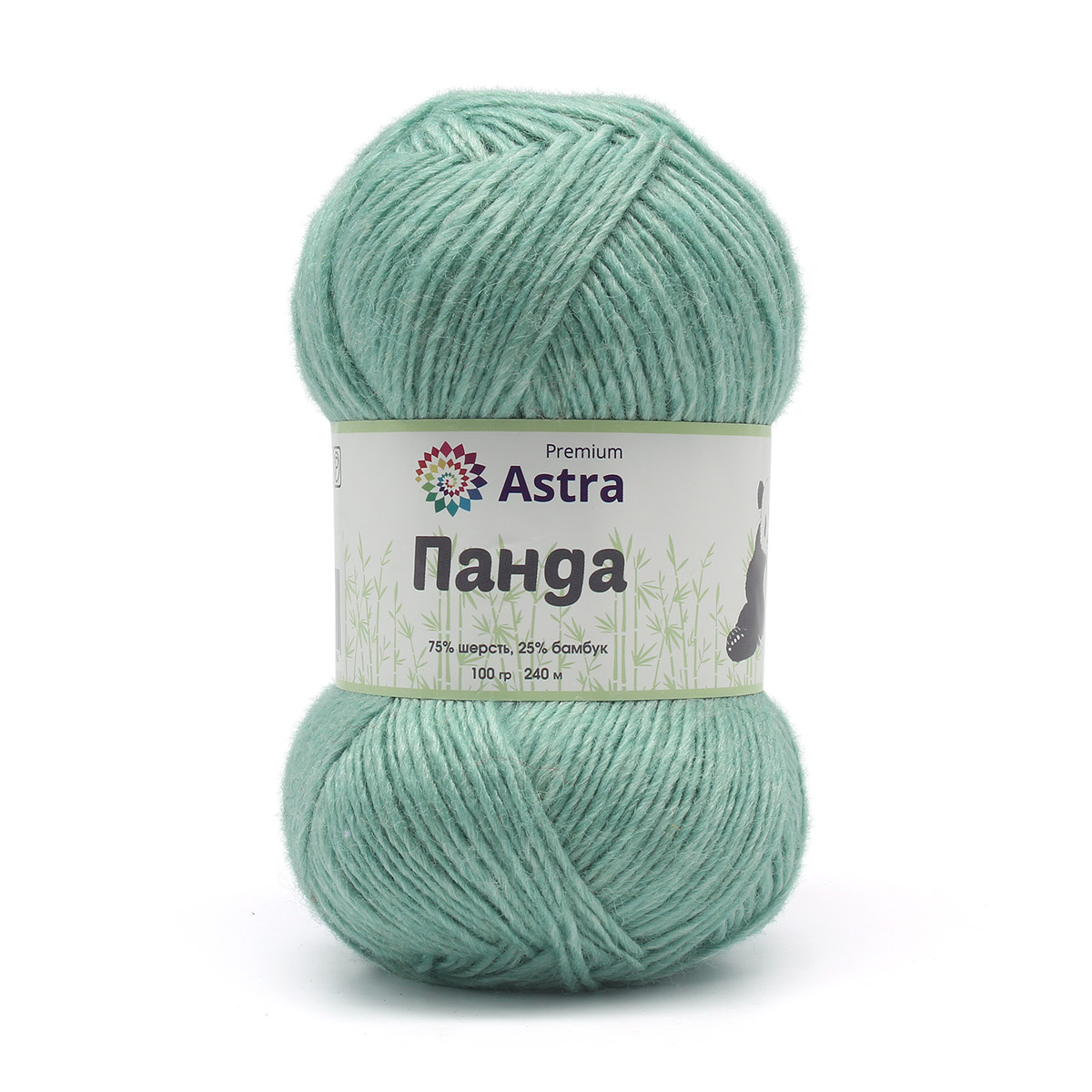 Пряжа Astra Premium (Астра Премиум) Панда (Panda) / уп.2 мот. по 100 г, 240 м, 410 мятный
