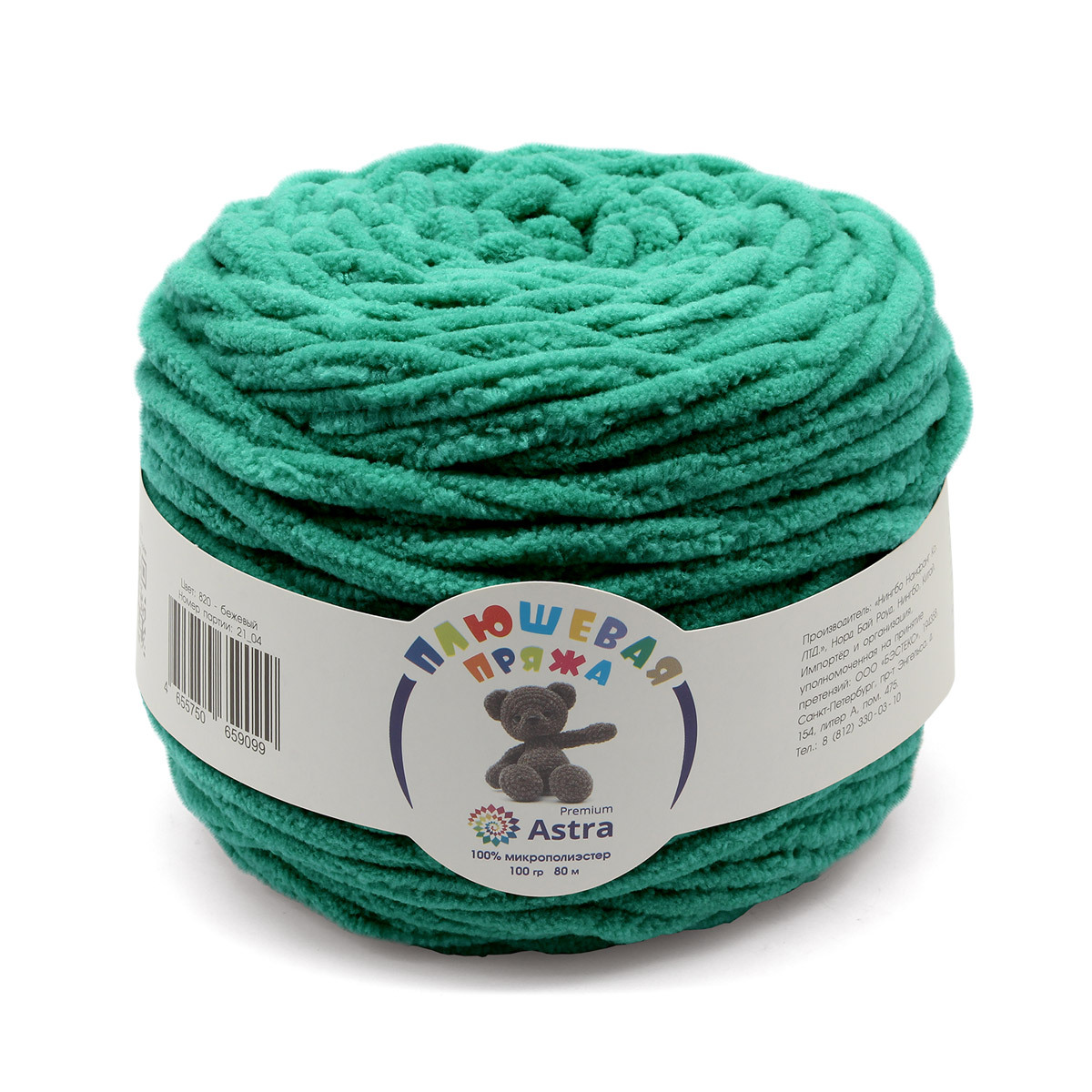 Пряжа Astra Premium (Астра Премиум) Плюшевая / уп.2 мот. по 100 г, 80 м, 412 изумрудно-зеленый