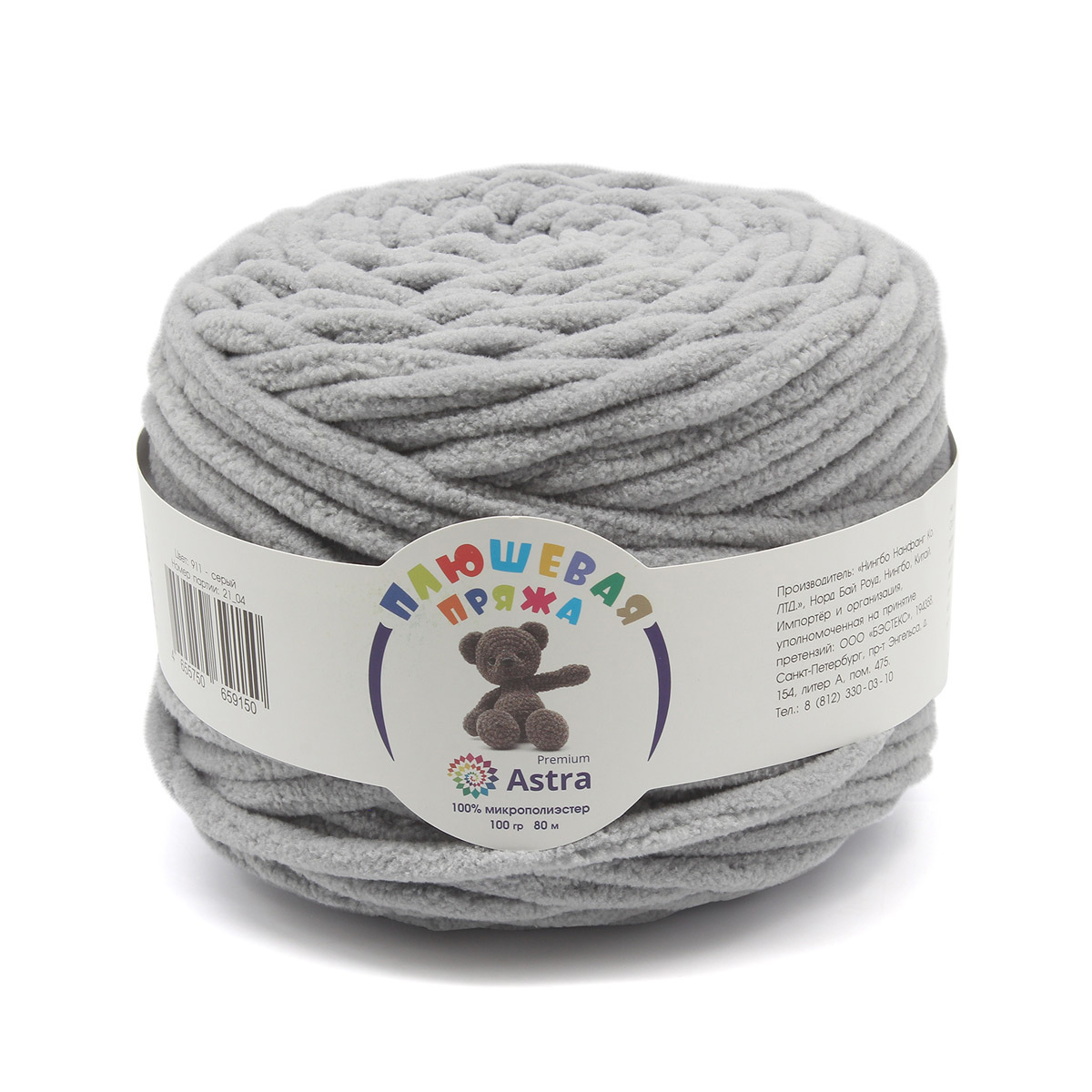 Пряжа Astra Premium (Астра Премиум) Плюшевая / уп.2 мот. по 100 г, 80 м, 902 светло-серый
