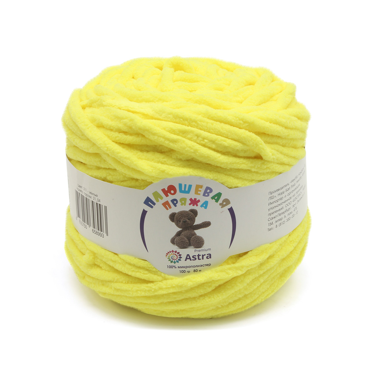 Пряжа Astra Premium (Астра Премиум) Плюшевая / уп.2 мот. по 100 г, 80 м, 311 желтый