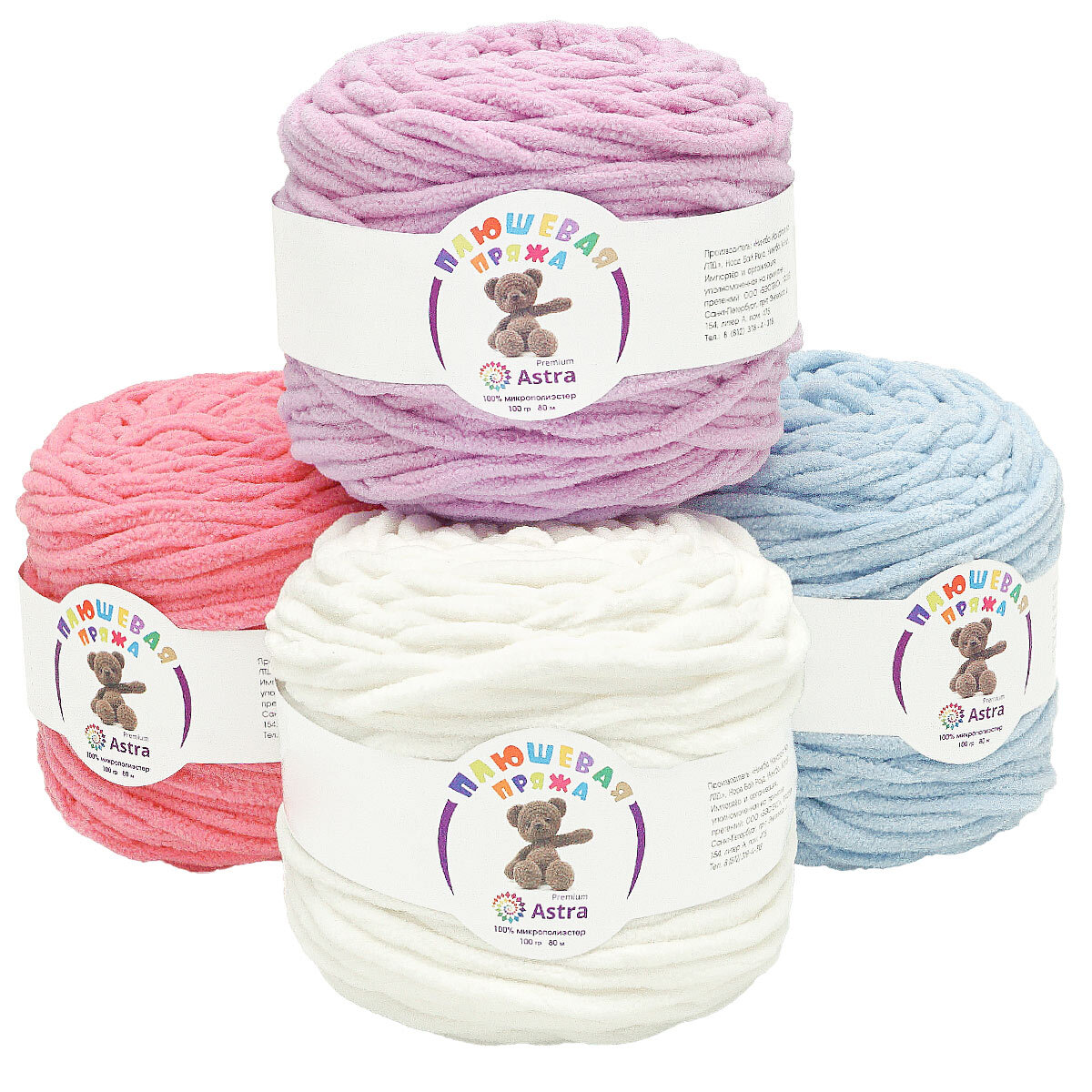 Пряжа Astra Premium (Астра Премиум) Плюшевая / уп.4 мот. по 100 г, 80 м, ассорти №1 (4 цвета по 100г)