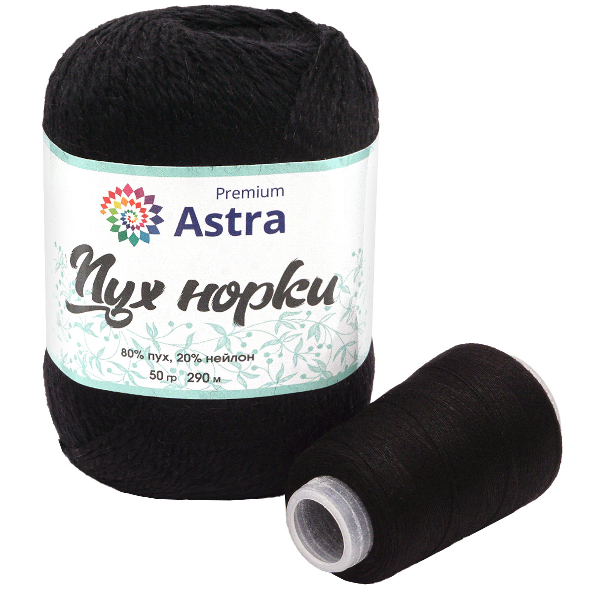 Пряжа Astra Premium (Астра Премиум) Пух норки / уп.3 мот. по 50 г, 290 м, 011 черный