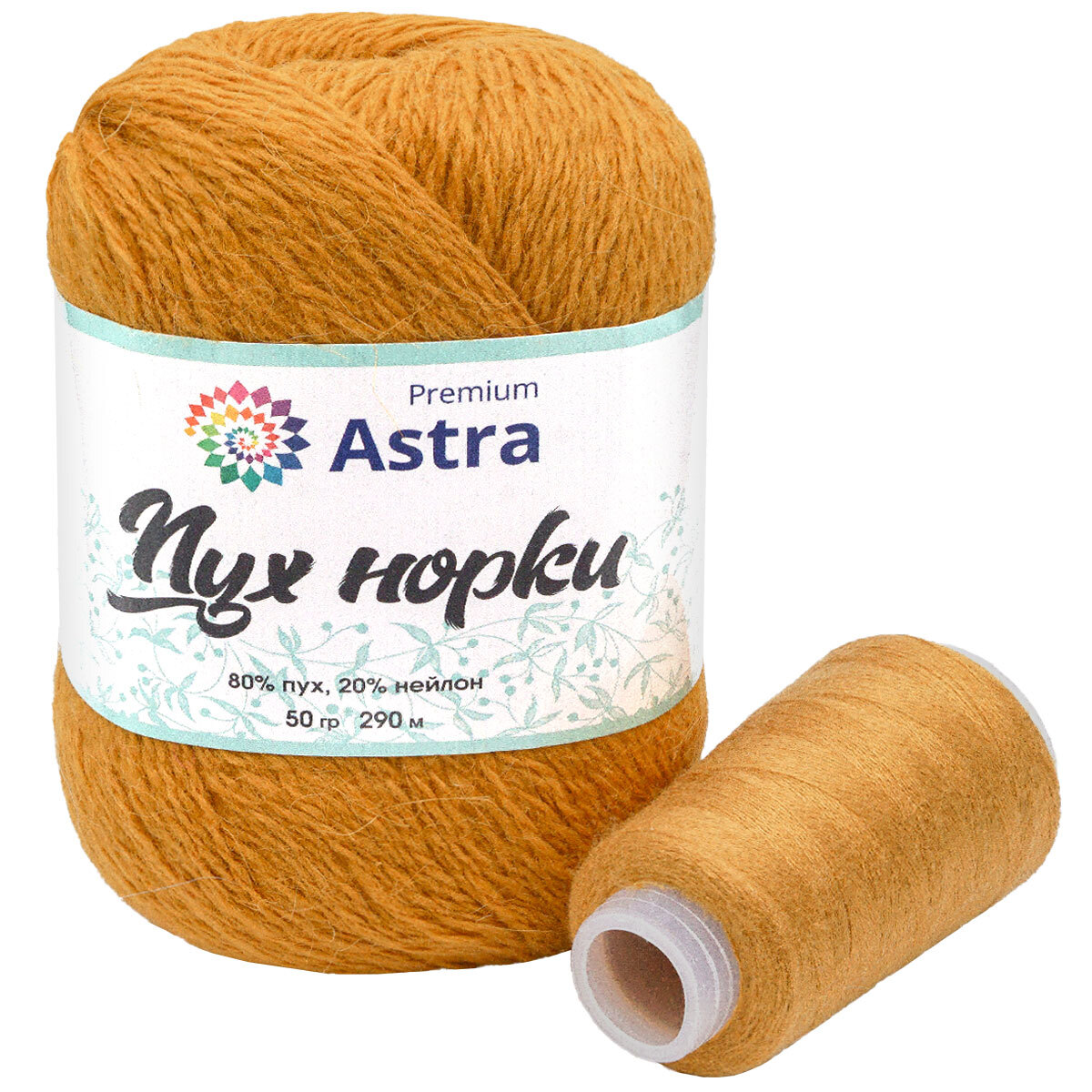 Пряжа Astra Premium (Астра Премиум) Пух норки / уп.3 мот. по 50 г, 290 м, 036 горчичный