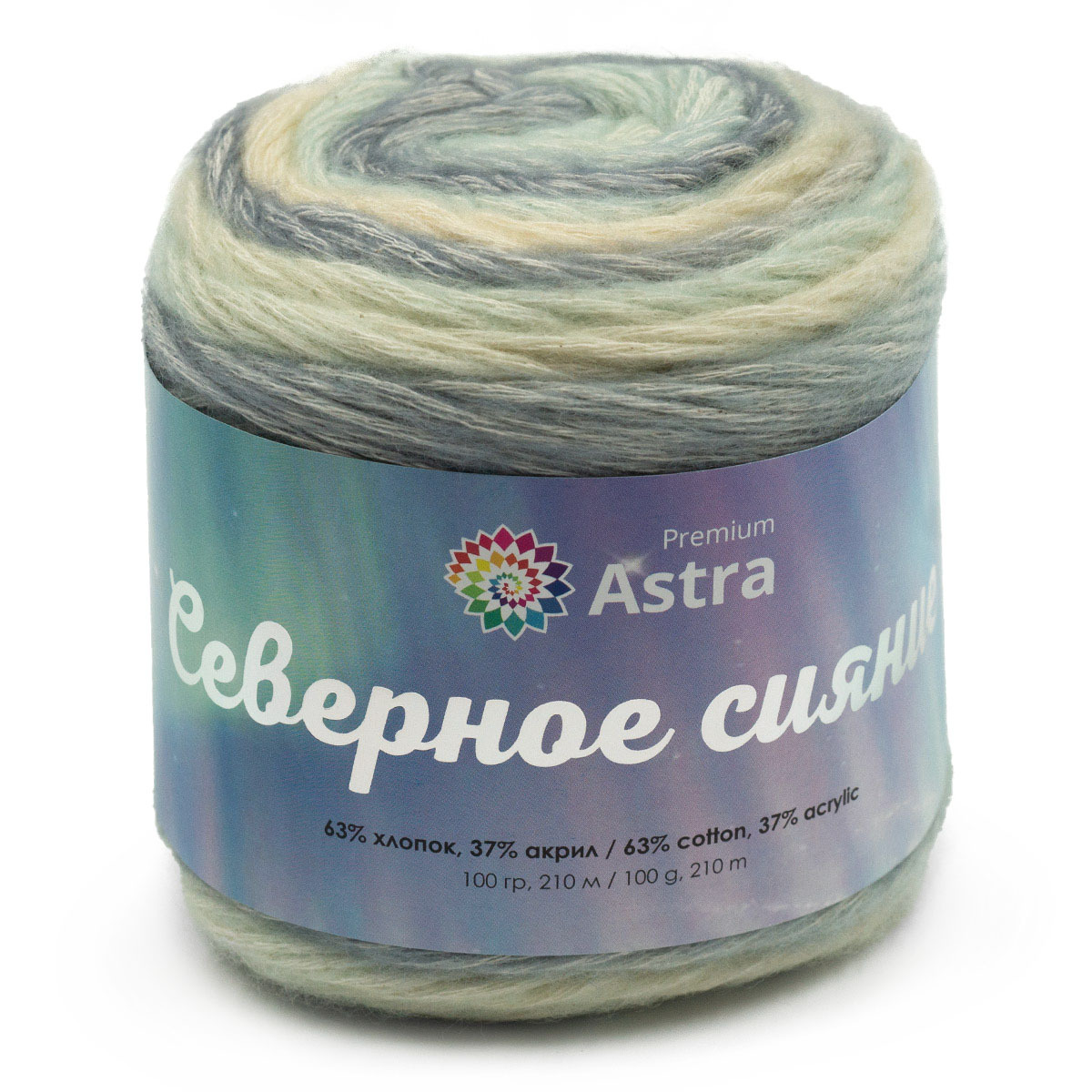 Пряжа Astra Premium (Астра Премиум) Северное сияние (Aurora Borealis) / уп.3 мот. по 100 г, 210 м, 01 секционный