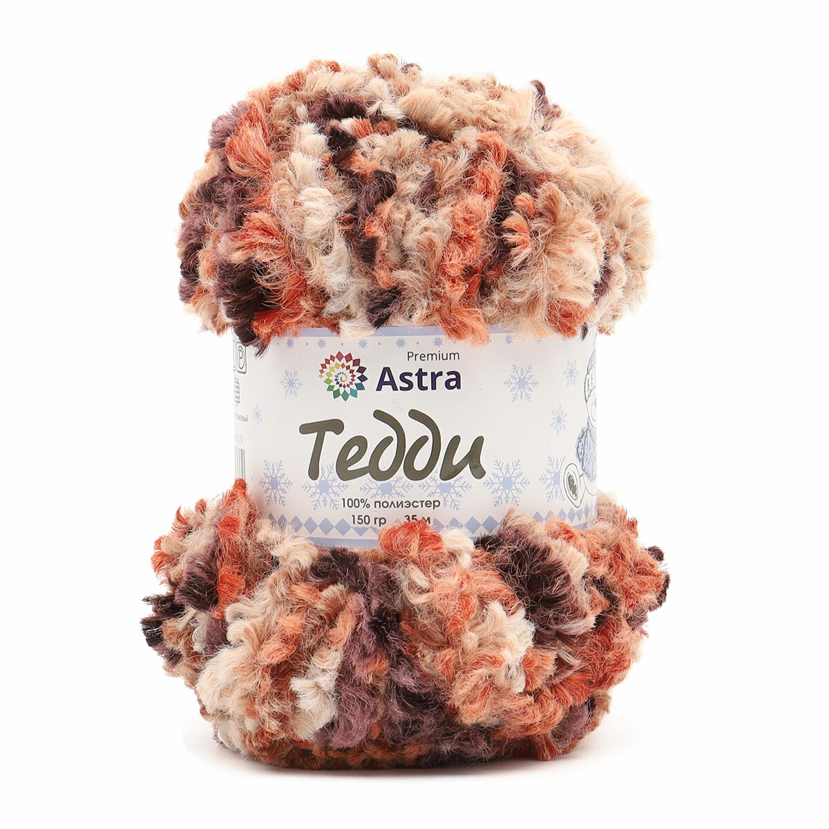 Пряжа Astra Premium (Астра Премиум) Тедди букле / уп.1 мот. по 150 г, 35 м, 11 оранжево-бежевый принт