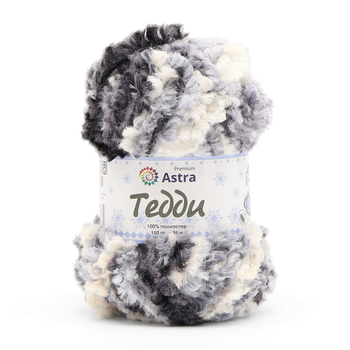 Пряжа Astra Premium (Астра Премиум) Тедди букле / уп.1 мот. по 150 г, 35 м, 12 серо-белый принт
